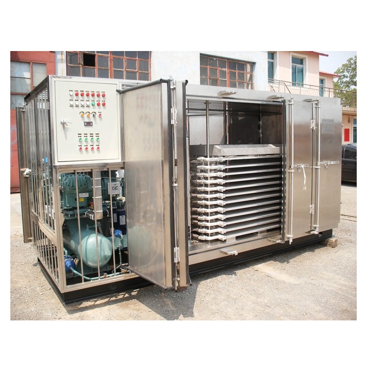 1、鋁整體平板傳熱面積大,輔以風機強制吹風冷卻,傳熱效率高,凍結時間短,凍結速度快,凍結高效、節(jié)能。