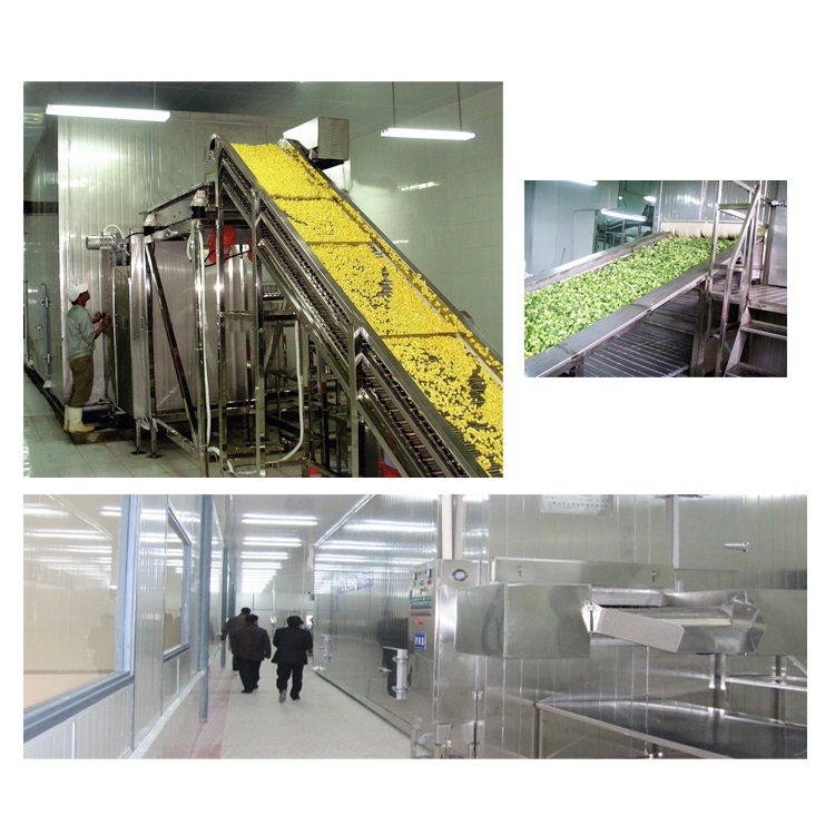 SLD系列新型高效流態(tài)化速凍機(jī)是我公司充分吸收國內(nèi)外的先進(jìn)技術(shù),揚(yáng)長避短、 集各家之長,新開發(fā)的新一帶速凍裝置,精湛的加工技術(shù)及一流的加工工藝,確保產(chǎn)品在同行中處于領(lǐng)先地位。該機(jī)融入最新速凍技術(shù)和最新設(shè)計(jì)理念,采用多項(xiàng)最新流態(tài)化凍結(jié)技術(shù),是當(dāng)前產(chǎn)品性能最卓越,設(shè)計(jì)最先進(jìn)的速凍機(jī)。該系列速凍裝置是實(shí)現(xiàn)果蔬類食品及部分海產(chǎn)品流態(tài)化單體凍結(jié)的最佳設(shè)備,用風(fēng)力強(qiáng)勁的離心式風(fēng)機(jī),凍品在不銹鋼輸送帶上移動,隨著氣流速凍的增加,食品層開始松動;當(dāng)風(fēng)壓達(dá)到一定數(shù)值時,食品顆粒不再保持靜止?fàn)顟B(tài),部分顆粒懸浮向上,造成床層膨脹,空隙率增大,即形成流化床;在此流化床上受由下而上的強(qiáng)冷風(fēng)吹浮處在懸浮狀態(tài)下的食品,凍品各面均受到冷風(fēng)繞流,來實(shí)現(xiàn)凍品的快速凍結(jié),形成單體,使被凍的凍品迅速通過冷卻,表層凍結(jié),深層凍結(jié)三個階段,從而獲得最高品質(zhì)的速凍食品。