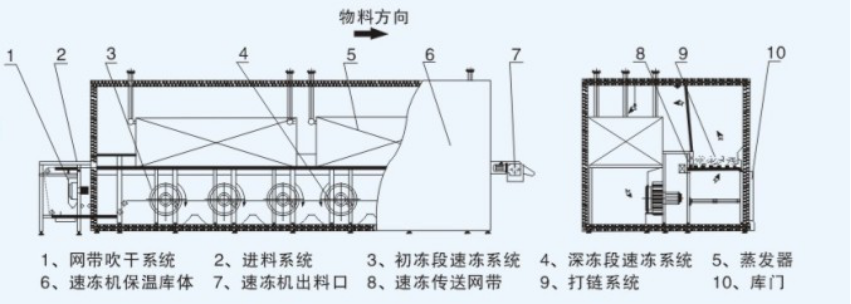 1、機(jī)型結(jié)構(gòu) 采用歐洲最成熟的機(jī)型,結(jié)構(gòu)合理,對不同的產(chǎn)品形狀和尺寸均能達(dá)到最佳的速凍效果。